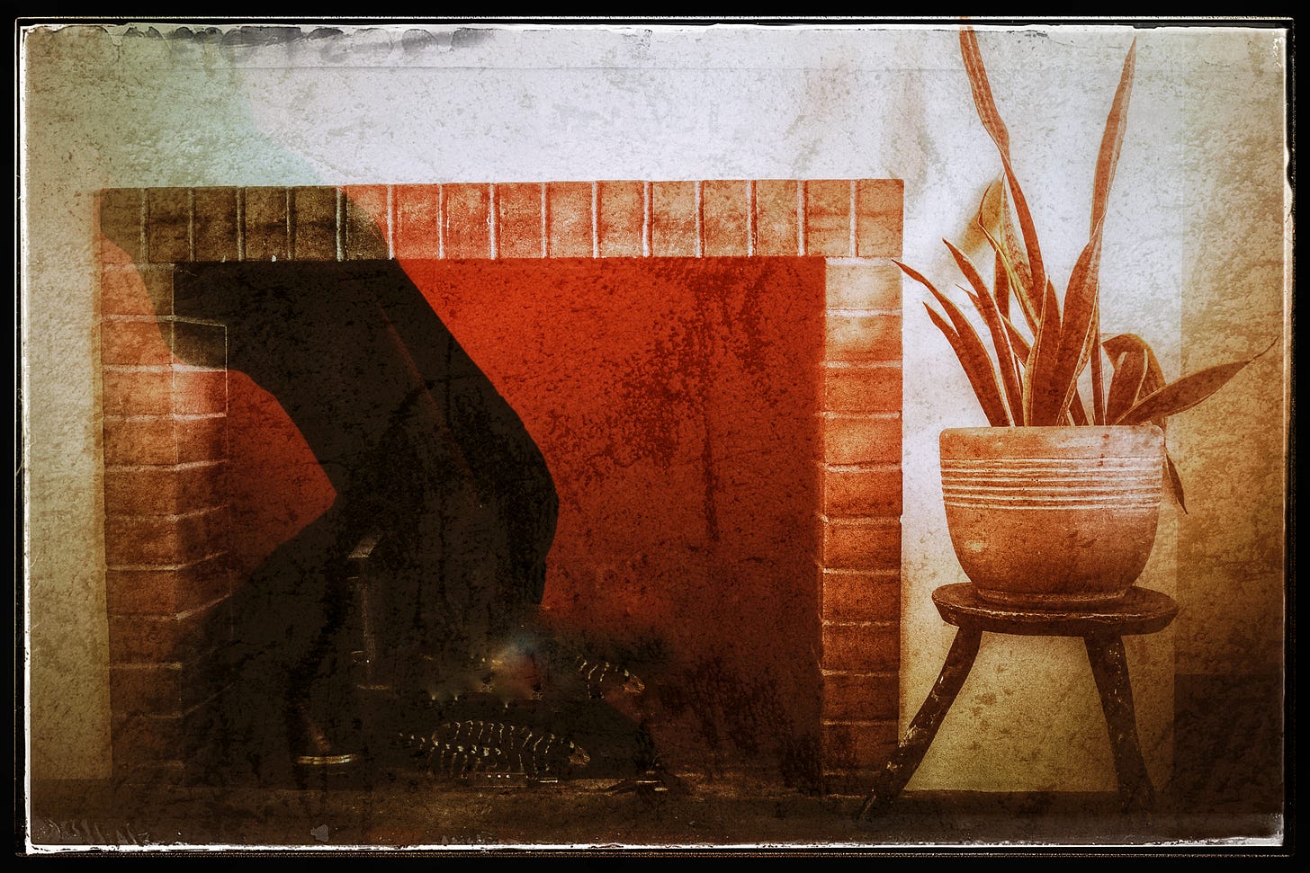 I had no answers to these questions and only barely noticed their arising and passing. My attention was on the fireplace because there was a human-like silhouette barely visible along the bricks.